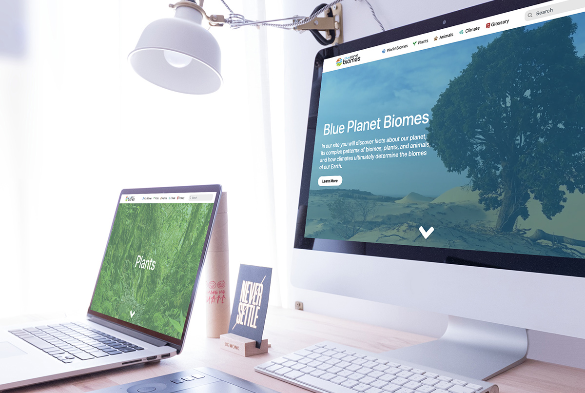 Blue Planet Biomes had long been the leader in children's eduction information on Earth's bioms, but when other competitors entered the market with a new campaign, the brand began to lose share. Blue Planet Biomes called on DS Interactive Design to help reinvent the brand to appeal to the younger demographic. Advertising Creative: Logo & Website Refesh.